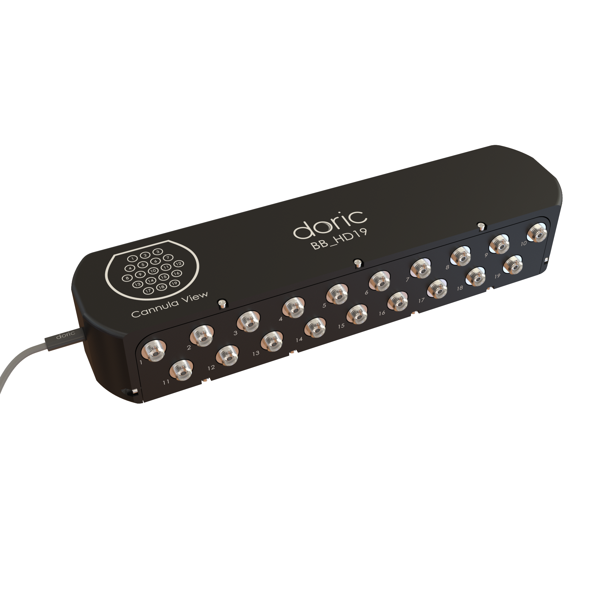 The Branching Box is available in three configurations: 7, 9 and 19 fibers, matching the 7, 9 and 19 High-density cannula configuration.