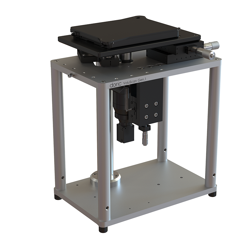 VoluScan™ is a fluorescent mesoscope that enables 1- or 2-color functional imaging of large sample volumes at a cellular resolution. VoluScan™ is designed to image fluorescent sensors (like GCaMP, jRGECO, dLight, etc.) in organoids, assembloids, brain slices, and cell cultures, but can also be used to study cell migration, division, or other processes. Furthermore, the system is compatible with Tokai Hit incubation chamber and can synchronize imaging with other systems using external digital triggers. Thus, VoluScan™ pairs readily with Light Sources (for optogenetics or uncaging), electrophysiology recordings, liquid infusion, etc.